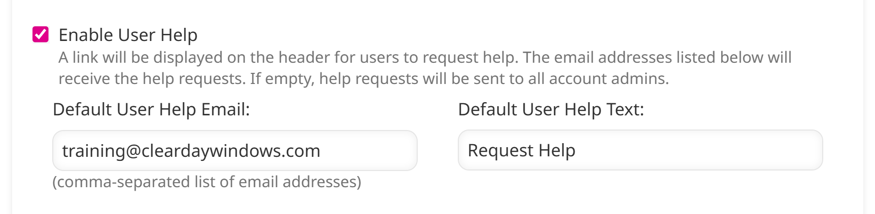 Enter the Default User Help Email where you want learner inquiries to be sent.