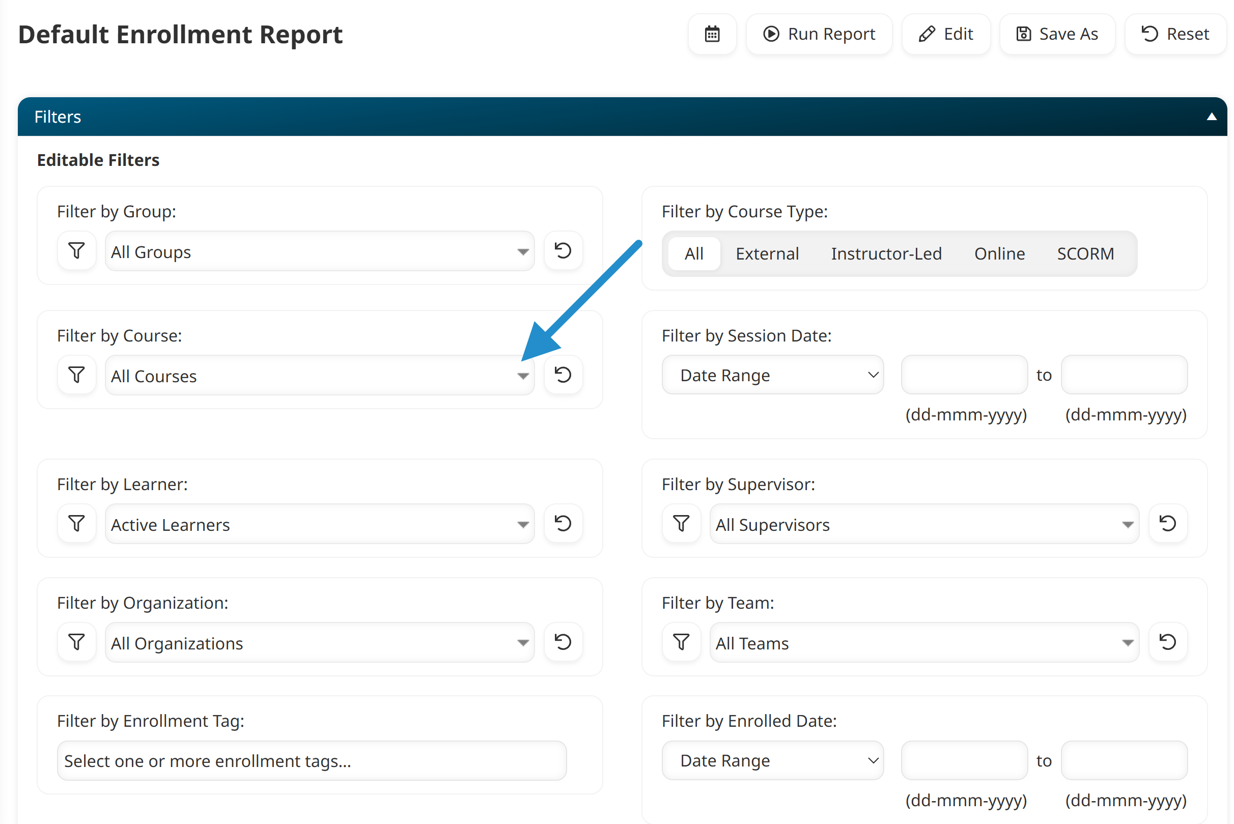 Running an Enrollment Report is one of the most common tasks for a SmarterU administrator. You may need to check who has started a specific course or verify a learner’s completion status for their assigned training.