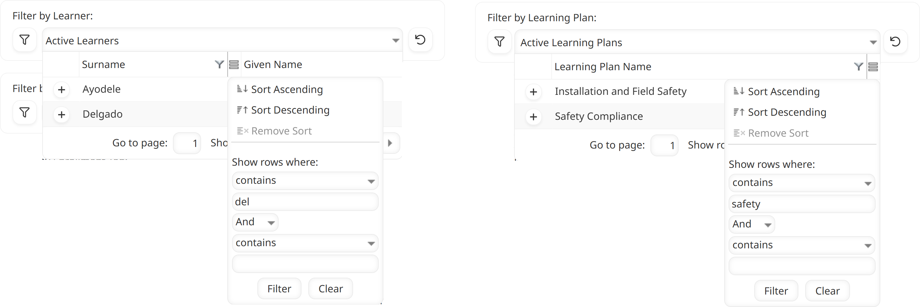 The search feature is also available with other filters in the Enrollment Report and Learning Plan Report. You can use this technique to find learners, learning plans, groups, teams, and more!