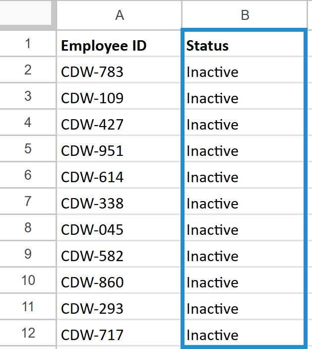 The CSV file you just exported will include a lot of user information, which is probably more than you need to update. We recommend that you edit your CSV file to include only the user’s email address or employee ID and the details you need to update. This ensures that you don’t accidentally update or delete information.