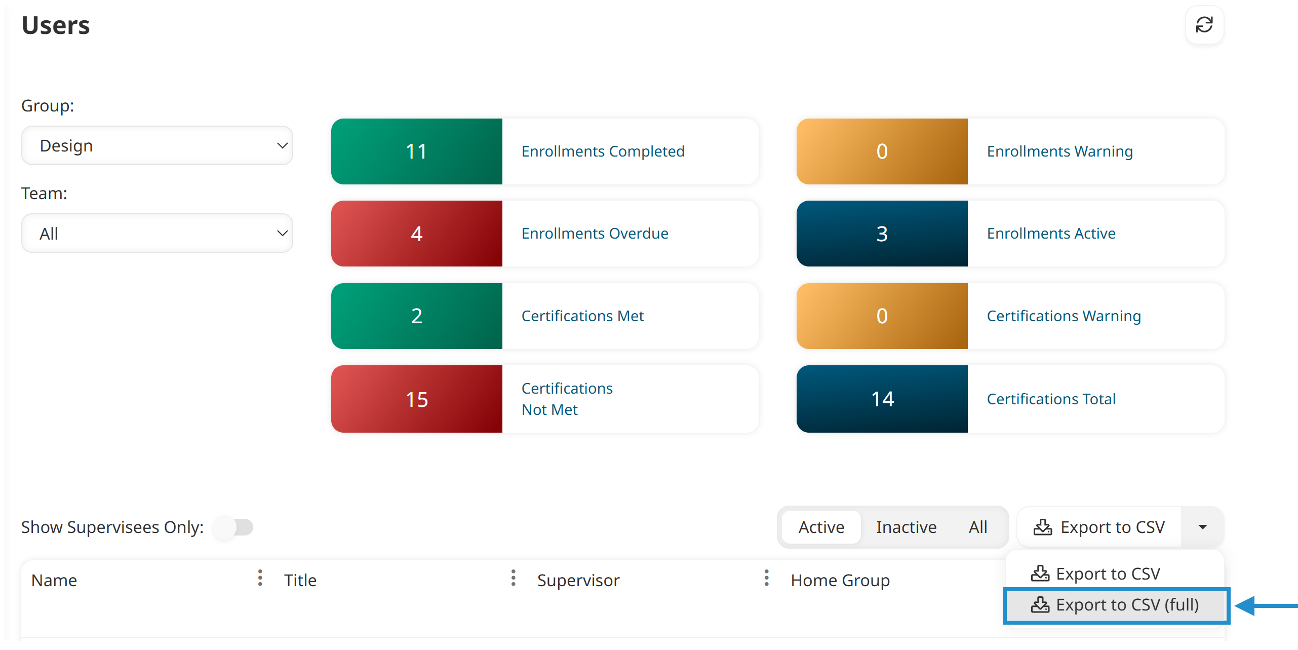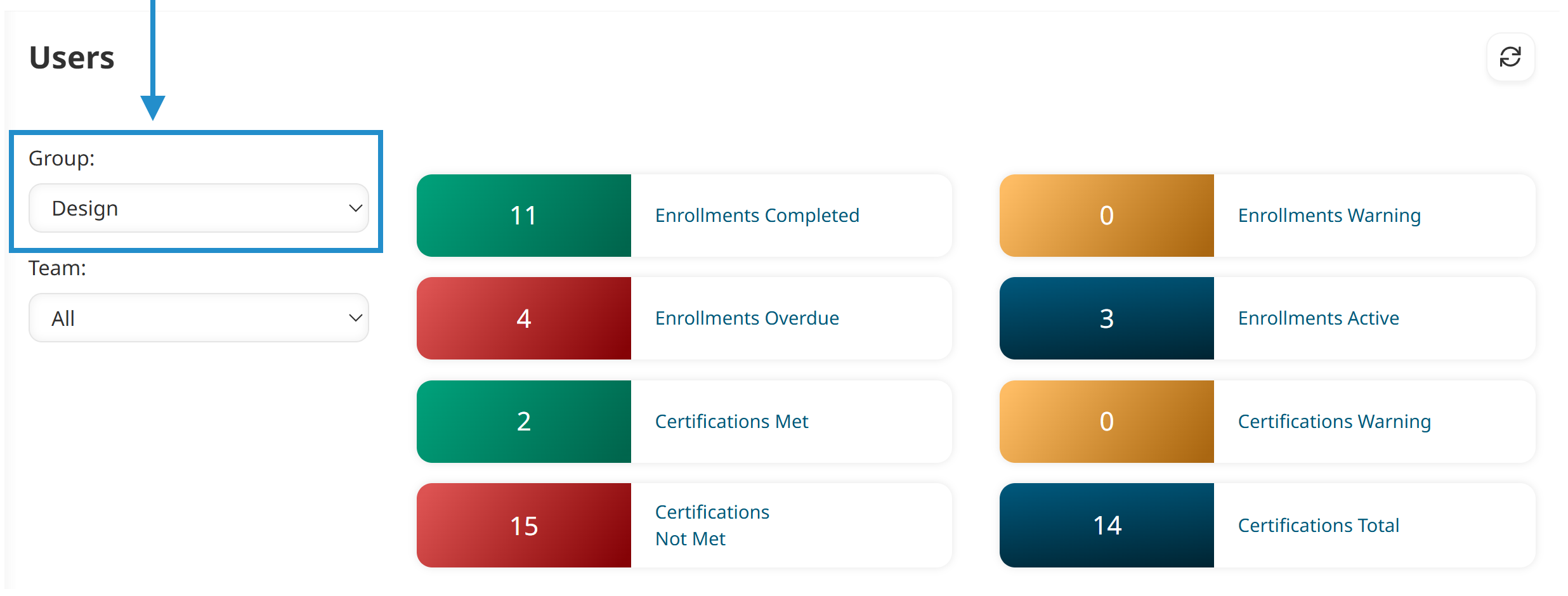 2. If the users you need to update are in a specific group, filter the Users Dashboard for that group. Otherwise, continue to the next step.